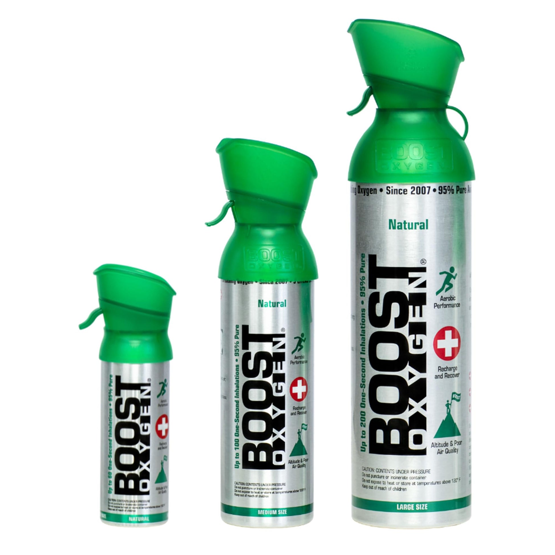 - CONVENIENT, LIGHTWEIGHT, AND RECYCLABLE: this 3-pack of Boost Oxygen comes with portable oxygen canisters for on-the-go lifestyles that are completely recyclable. Each Natural Collection pack includes 1 large canister, 1 medium canister and 1 pocket size canister.